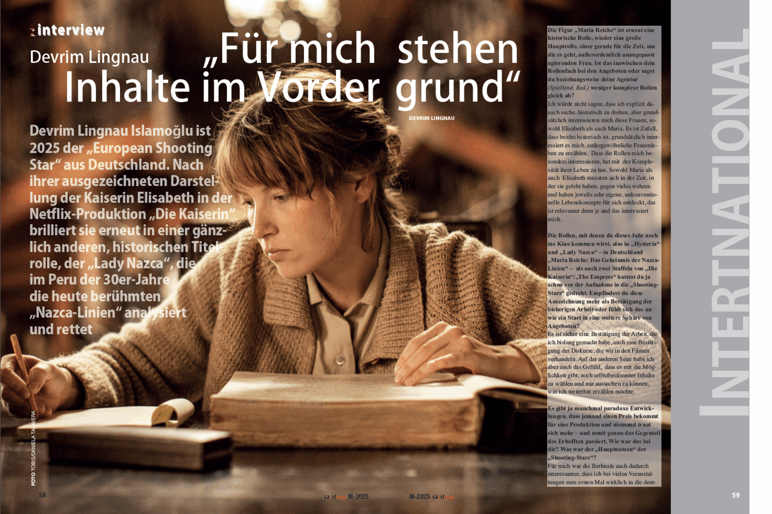 Devrim Lingnau Islamoğlu, weltweit erfolgreich als „Die Kaiserin“ auf Netflix spielt eine gänzlich andere historische Rolle, die Mathematikerin Maria Reiche, die in den 30er-Jahren in Peru ihre Bestimmung fand, als sie die Zeichen einer vergangenen Kultur, der Nazca, entdeckte und rettete. „Lady Nazca“ ist der internationale Titel, als „Maria Reiche – Das Geheimnis der Nazca-Linien“ ist das spiel-und bildgewaltige Kinoereignis ab dem 24. September zu sehen.